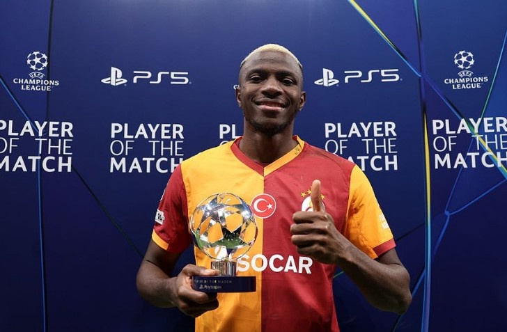 打进制胜球,官方:奥斯梅恩当选加拉塔萨雷1-0利物浦最佳球员