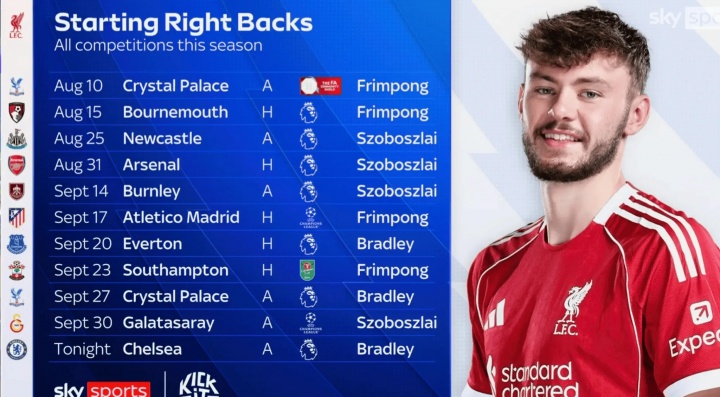 此役布拉德利担任利物浦杆位右后场球员,苏超直播据天空体育统计,本赛季利物浦没有任何右后场球员连续4场杆位。
