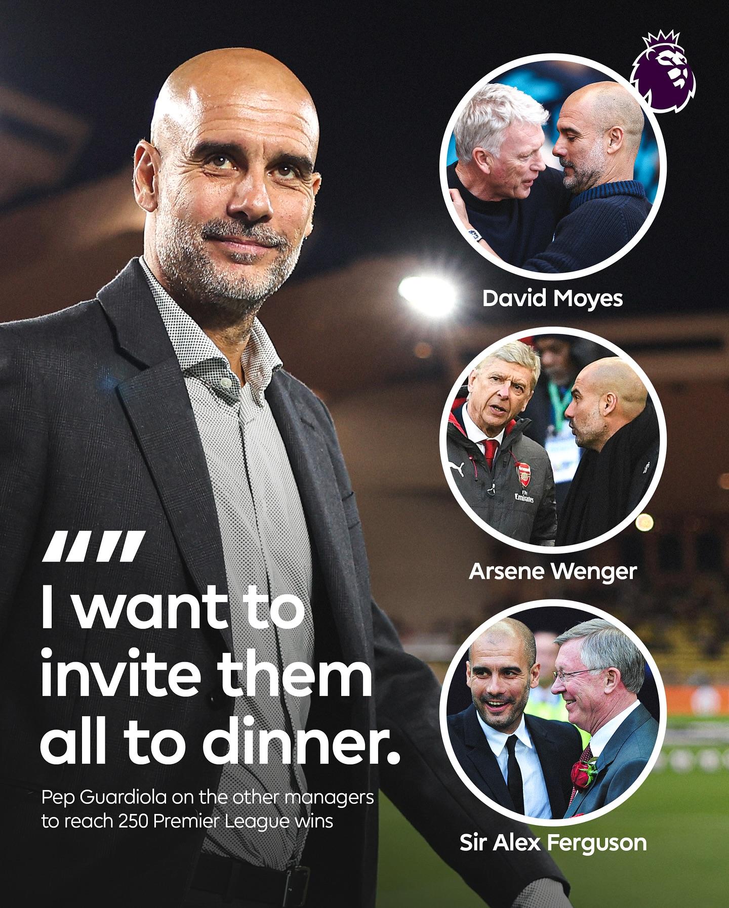 英超官方列最快取得英超250胜指导教练员: 请安排四人桌用餐