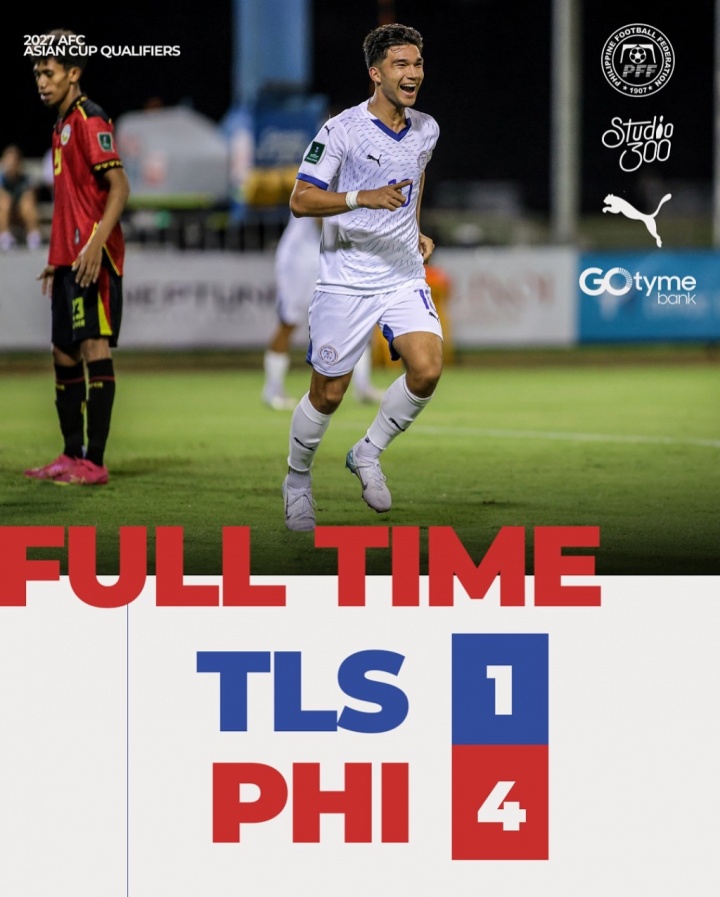 10月09日讯 在刚刚结束的一场亚洲杯预选赛中,菲律宾4-1完胜东帝汶,暂列小组第1。