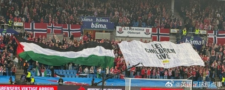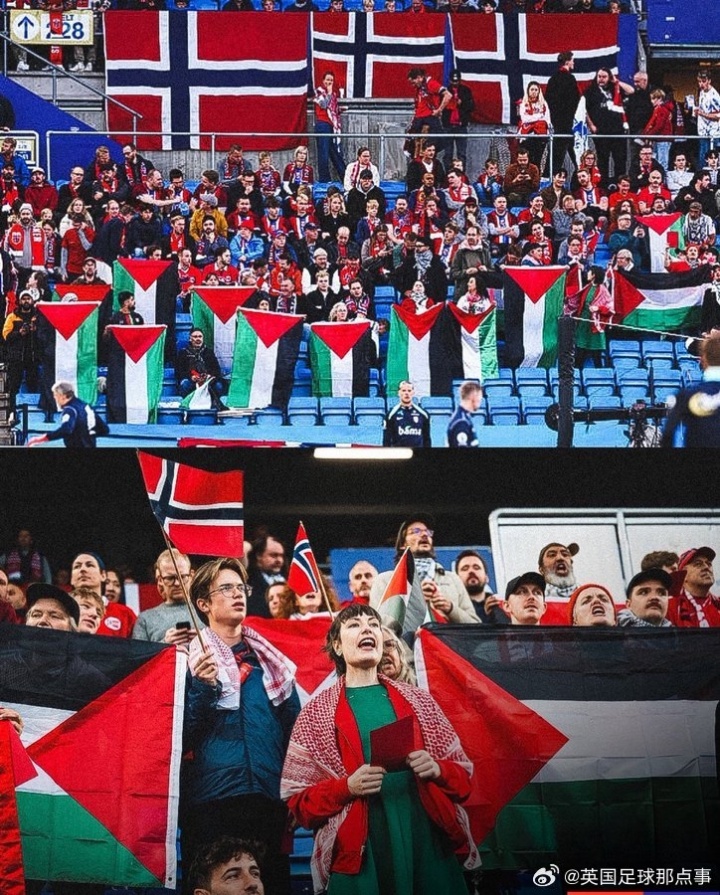 在挪威主场作战 还可以看到许多巴勒斯坦国旗🇵🇸
