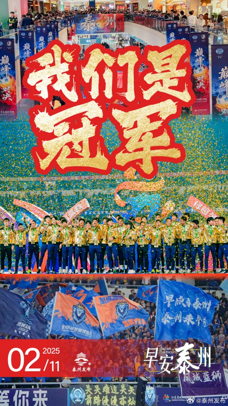11月2日讯 首届苏超落下帷幕,泰州队十二码球击败南通队夺得第一名 。“泰州发布”发文称:相信相信的力量!相信理想 !相信奇迹!!足球博彩足球博彩投注网站