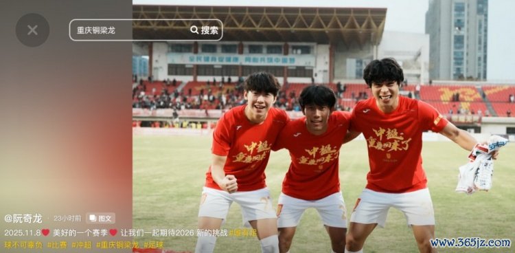 11月10日讯 2025赛季中甲职业联赛 最后一轮,重庆铜梁龙客场应战 2-0击败上海嘉定汇龙,冲超成功。赛后,球员阮奇龙更新了个人社交媒体。
